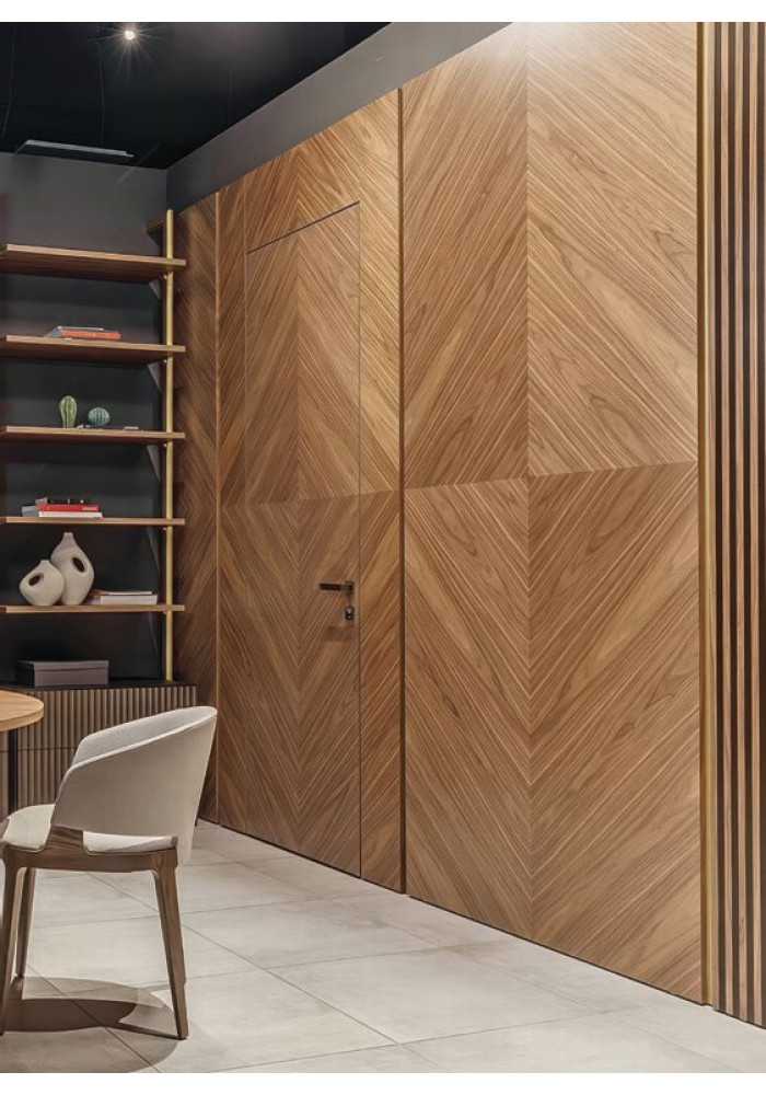 Направление шпона в моделях формирует рисунок ~ Гладкая горизонтальный или вертикальный шпон (базовая стоимость); Ёлочка, Ромб, Квадрат, Комбо (+10%); Лучи (+ 20%)