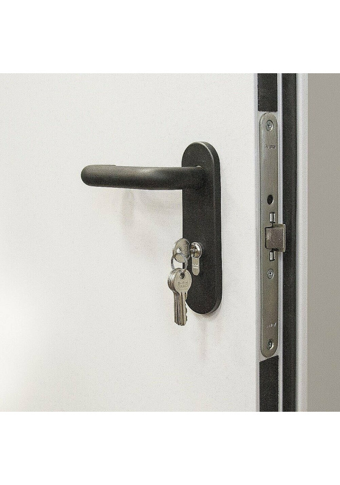 - Замок: Врезной цилиндровый Apecs 2000-ZN, 2 ригеля диаметром 14 мм