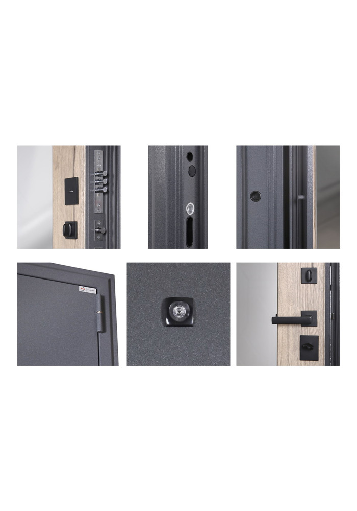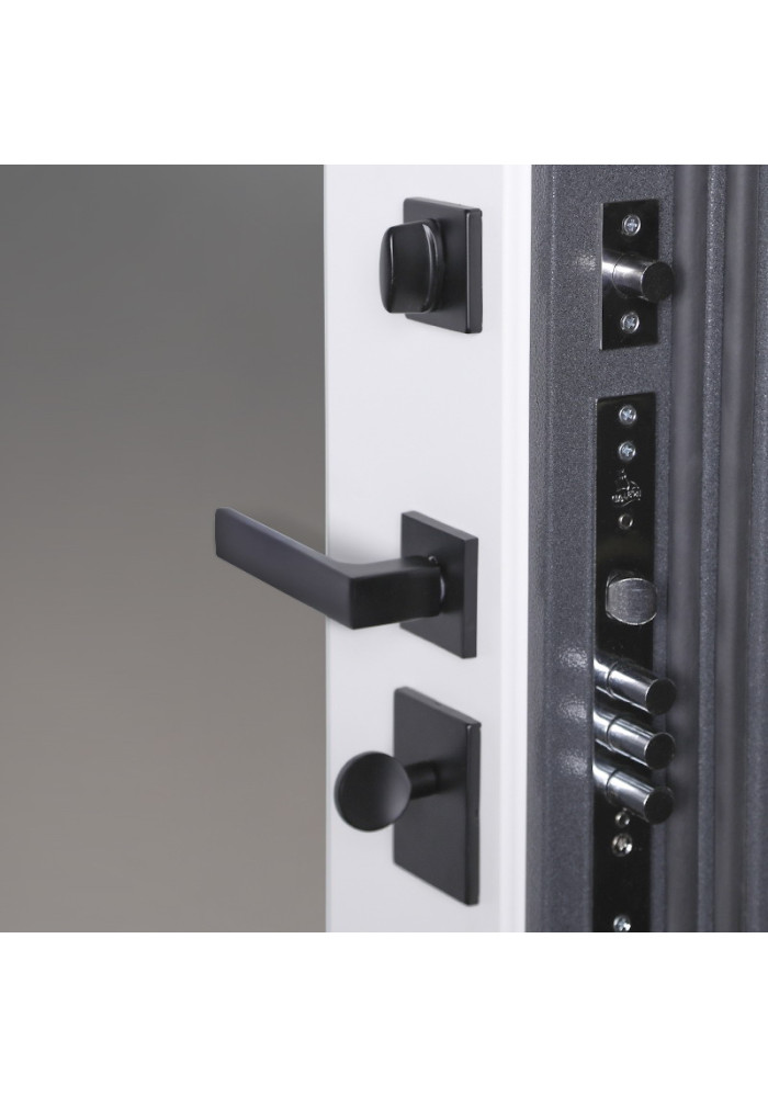 - Фурнитура: Ручка, ночная задвижка, глазок на квадратной розетке (цвет «черный»).